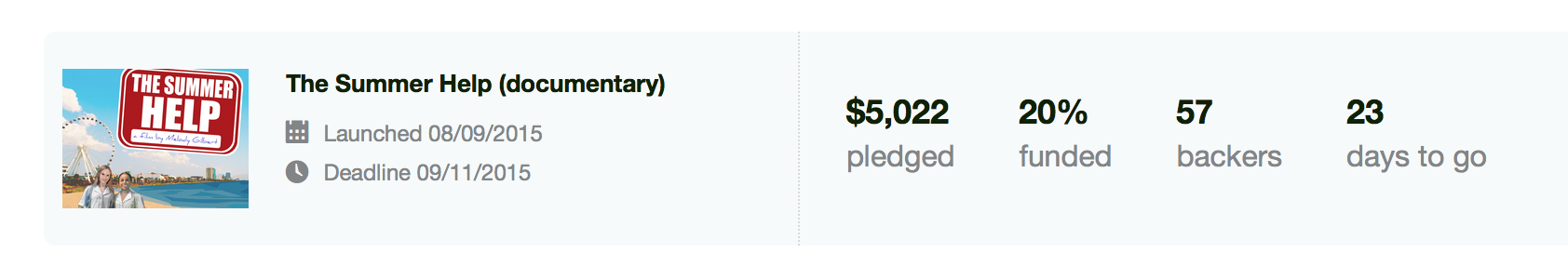 Lots of great stuff happening with the Kickstarter campaign for The Summer Help documentary! Here’s a quick update: